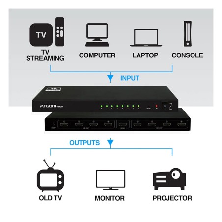 Splitter Argom ARG-AV-5118 4K(3840x2160p) 8 Puertos HDMI 4K